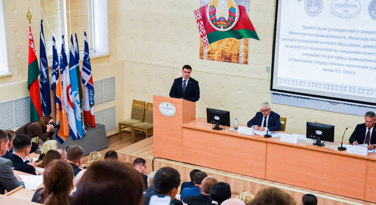 Сегодня в Гомельском государственном техническом университете имени П.О. Сухого состоялась рабочая встреча представителей Министерства образования и Министерства промышленности Республики Беларусь, ректоров ведущих технических университетов страны, руководства профессиональных колледжей и директоров крупных белорусских промышленных предприятий.
