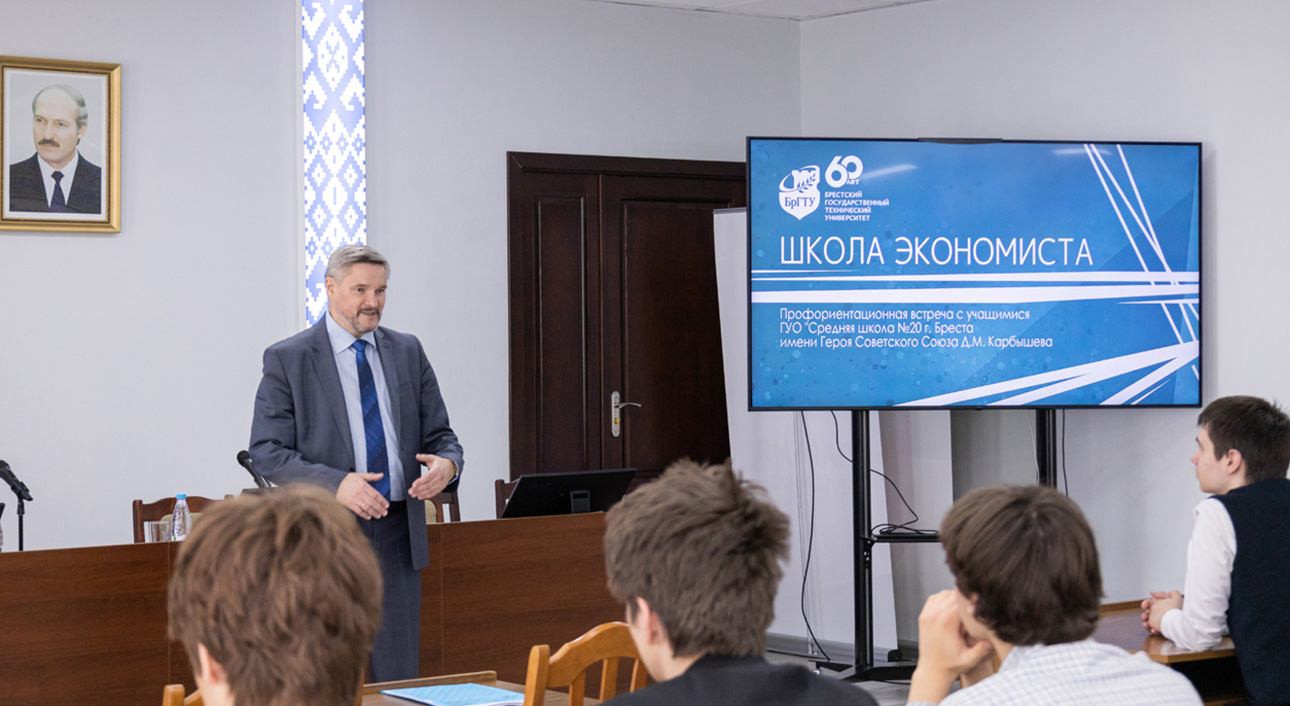 На экономическом факультете БрГТУ состоялась встреча с учащимися 11 класса средней школы №20 г.Бреста имени Героя Советского Союза Д. М. Карбышева. В формате открытого диалога школьники познакомились с экономическими специальностями, узнали о возможностях обучения и карьерных перспективах.