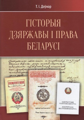 Гісторыя дзяржавы і права Беларусі : падручнік / Т. I. Доўнар. – 3-е выданне, стэрэатыпнае. – Мінск : Адукацыя і выхаванне, 2023. – 431, [1] с. : іл. – Бібліяграфія: 10 назв. – Зацверджана Міністэрствам адукацыі Рэспублікі Беларусь у якасці падручніка для студэнтаў устаноў вышэйшай адукацыі па спецыяльнасцях «Правазнаўства», «Паліталогія (па напрамках)», «Эканамічнае права», «Міжнароднае права», «Дзяржаўнае кіраванне і права». – 500 экз. – ISBN 978-985-599-540-2.